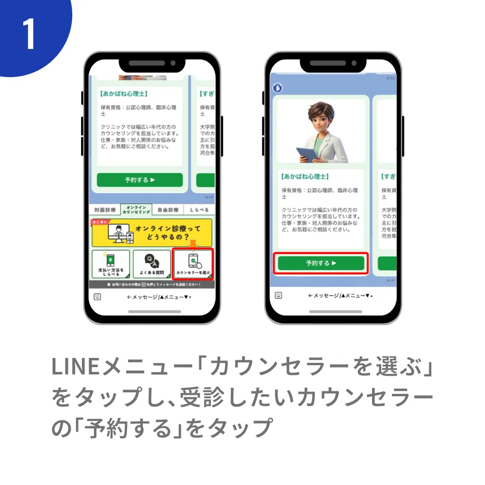 当院は医師の診察により導入開始となるカウンセリングに加え、医師の診察無しでもご利用いただけるオンラインカウンセリングがございます。